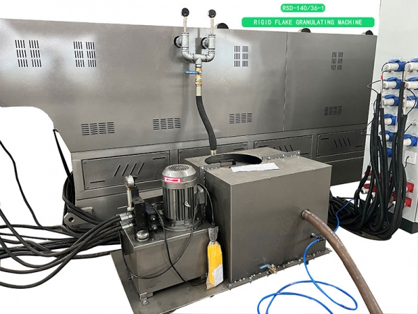 Rigid Flake Granulating Machine is a type of single-stage granulator. It has the characteristics of simple structure, easy maintenance, low energy consumption and high output performance. It is mainly suitable for raw material extrusion granulation with clean or single raw material, stable components, less water content and impurities, and no need for secondary plasticization and multiple exhaust and filtration. It is often used in modified granulation, clean plastic recycling or corner material recycling. According to the needs of different users, screw can be designed and assembled for different purposes and types, such as single-exhaust/vacuum exhaust/double-exhaust or non-exhaust/mixing extrusion, or different configurations can be selected according to the actual situation of users, such as electric network change, quantitative feeding, precise temperature control, and combination with different supporting equipment to form a production line that can meet various requirements (such as drawing water). Cold-cut/water-ring-cut/hot-cut air-cooled granulation, etc. Single-machine granulator can be used to process powder, powder, particle or mixture of sheet material. From the aspect of raw material category, it can be used for drawing water-cooled granulation processing of hard plastics such as PP PE ABS PS PC PU PPR POM PMMA PVC, or as the main machine of hot-cut air-cooled granulator, water-ring granulator and underwater granulator.