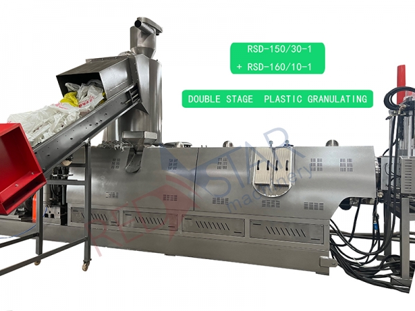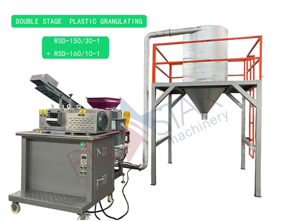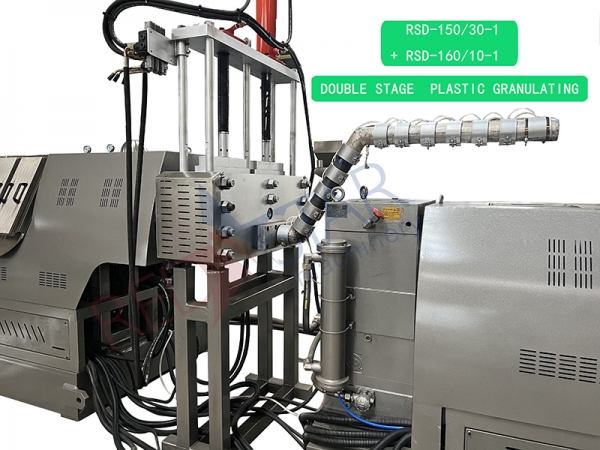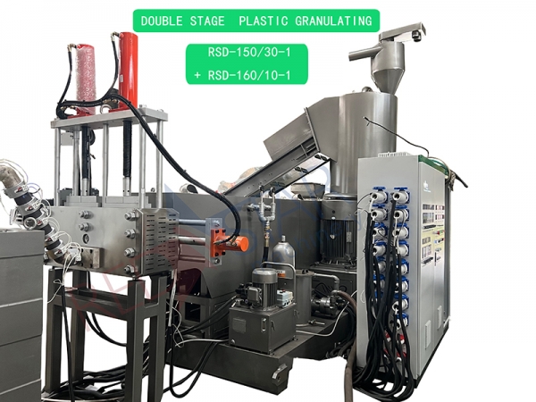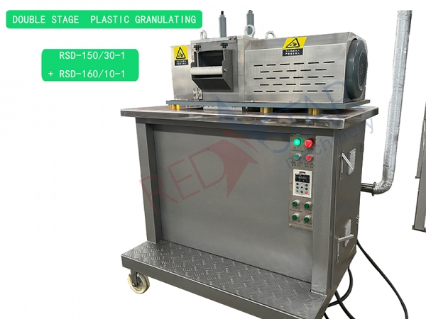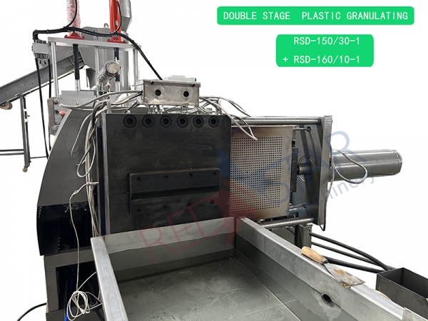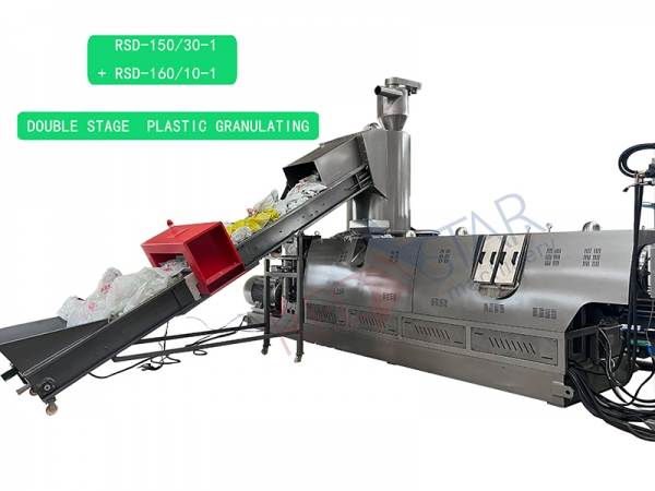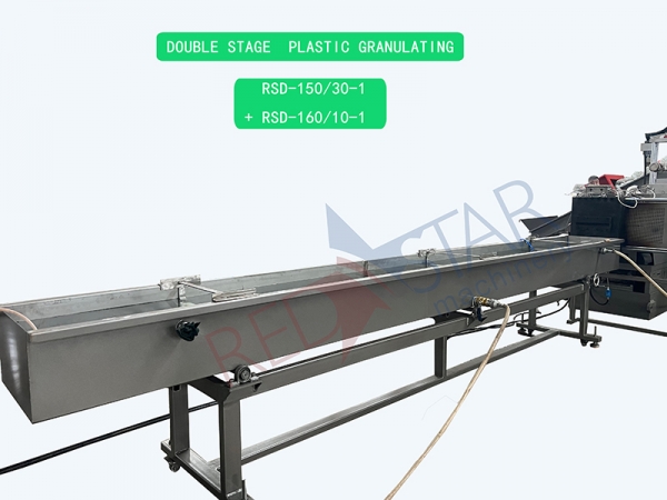 The equipment for recycling and granulating waste plastics is mainly composed of conveyor belt, compacting bin, single screw extruder, hydraulic die mesh changer, cooling water tank, granulator, air supply bin, control box, etc.
